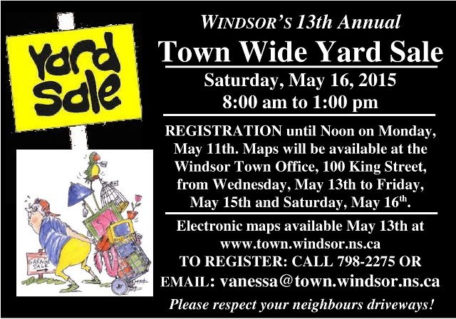 The Town Wide Yard Sale runs from 8am to 1pm. Find more information here.